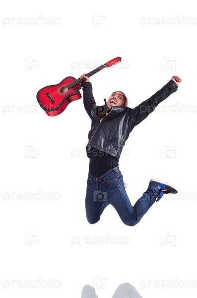 Гитарист, изолированный на белом фоне