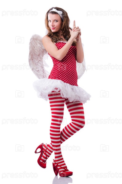 Ангел в красной одежде на белом фоне