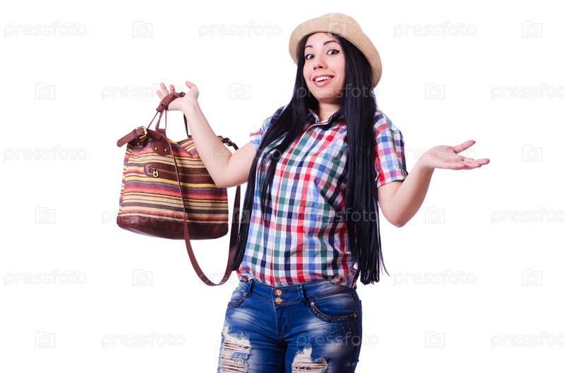 Молодая женщина, готовая к летним каникулам, на белом фоне