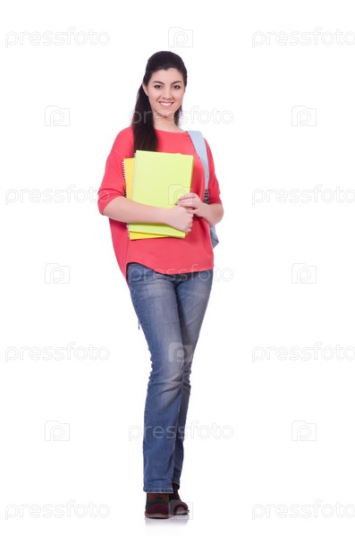 Студент с книгами, изолированный на белом фоне