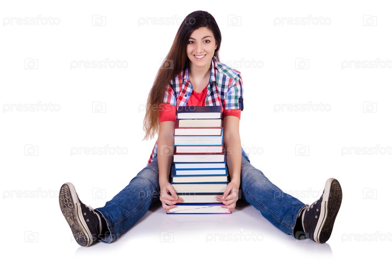 Студент с книгами, изолированный на белом фоне