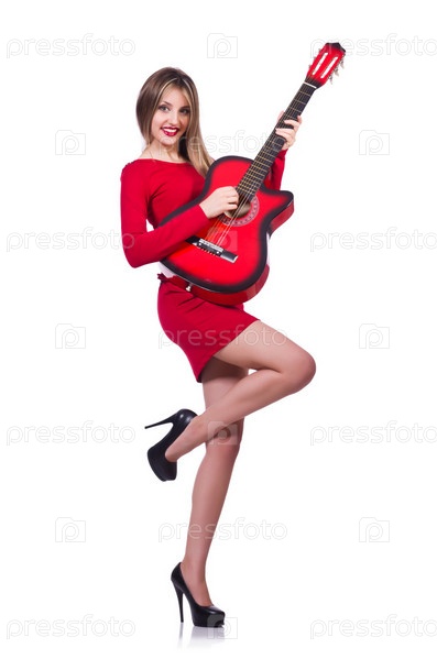 Гитаристка, изолированная на белом фоне