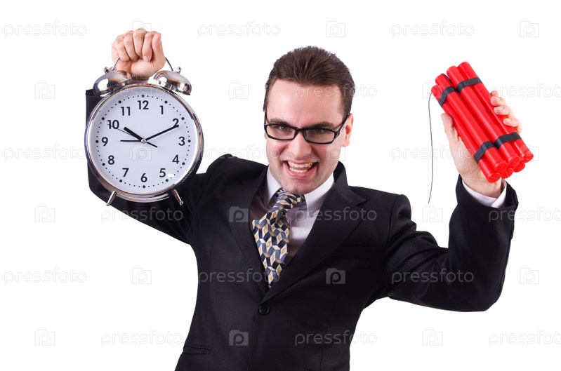 Человек с бомбой, изолированный на белом