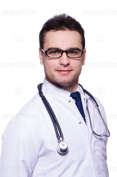 Молодой врач, изолированный на белом фоне