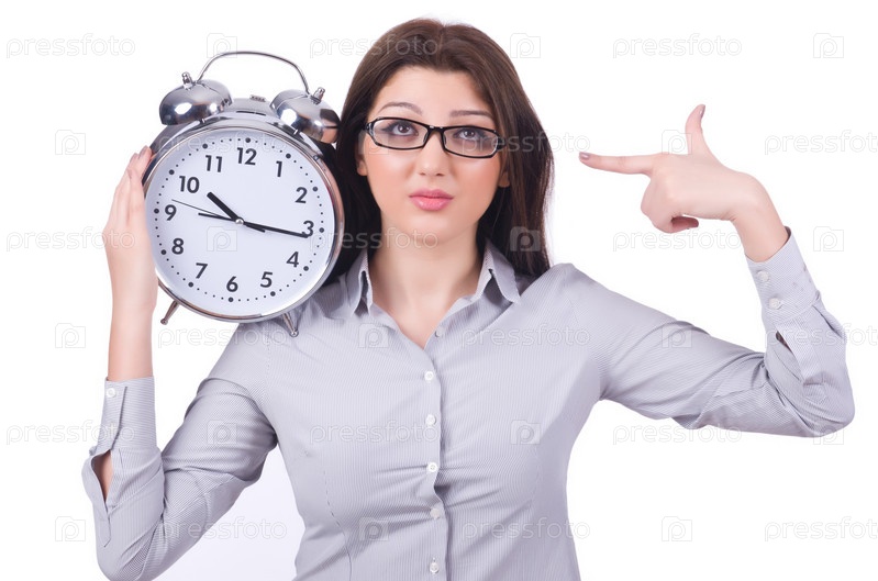 Женщина с часами, изолированная на белом