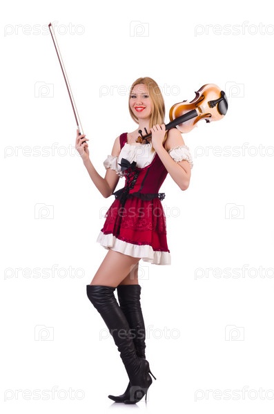 Девушка играет на скрипке на белом фоне