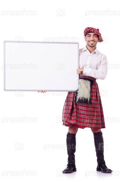 Шотландец с чистой доской на белом фоне