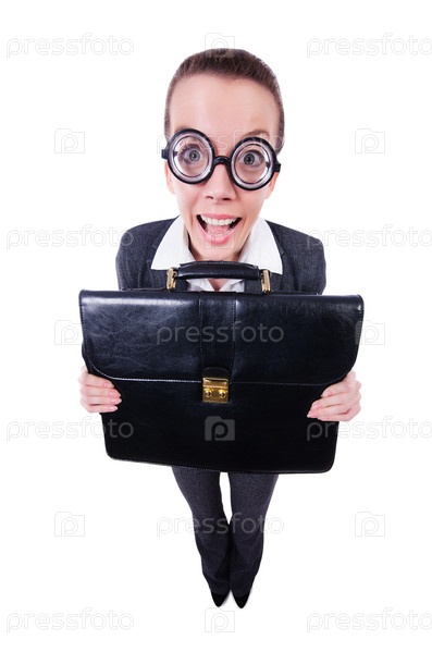 Смешная деловая женщина, изолированная на белом фоне