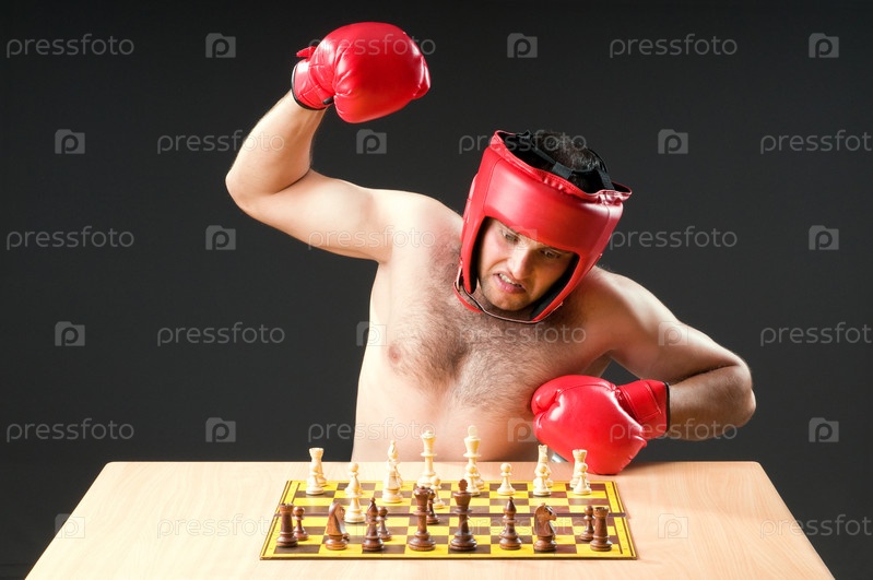 Боксер размышляет над шахматной партией