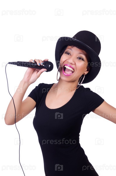 Темнокожая певица, изолированная на белом фоне
