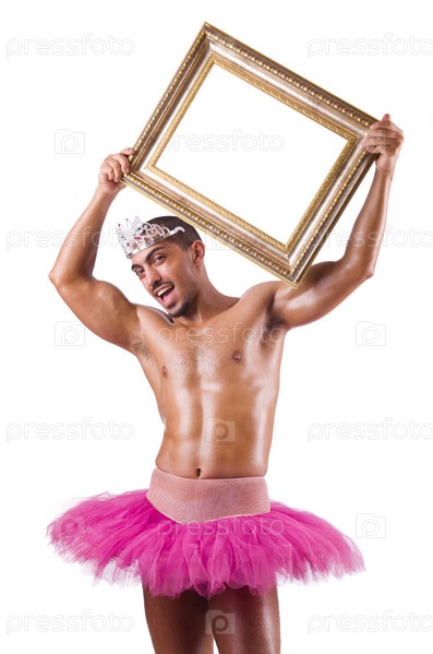 Мужчина в розовой пачке с рамой