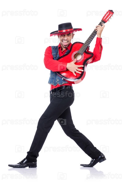 Гитарист, изолированный на белом