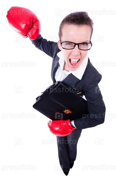 Женщина с боксерскими перчатками на белом