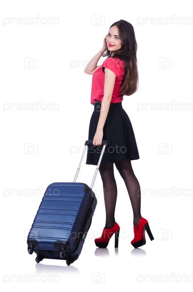 Молодая женщина, готовая к летним каникулам, на белом фоне