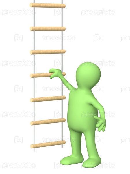 Человечек, собирающийся подниматься по веревочной лестнице