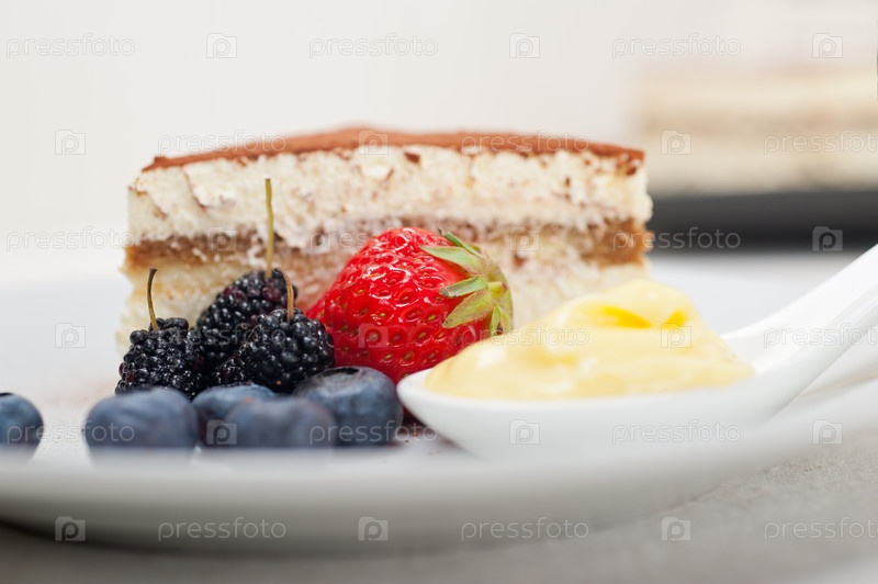 Десерт тирамису с ягодами и сливками