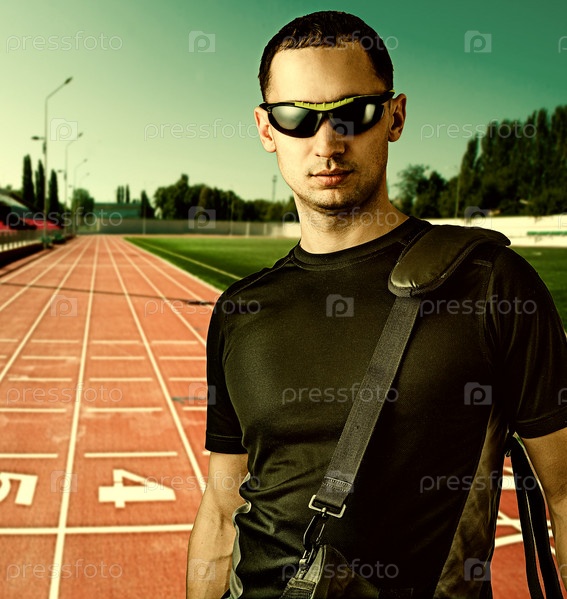 Мужчина с солнцезащитных очках на стадионе