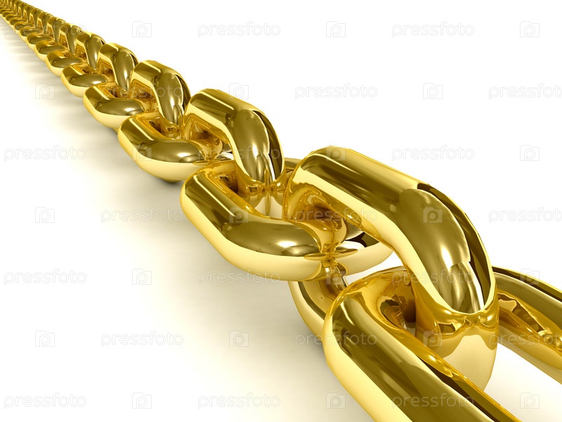Золотая цепочка на белом фоне. 3D иллюстрация. Концепция