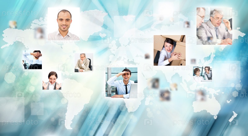 Фото деловых людей на карте мира. Концепция международных коммуникаций