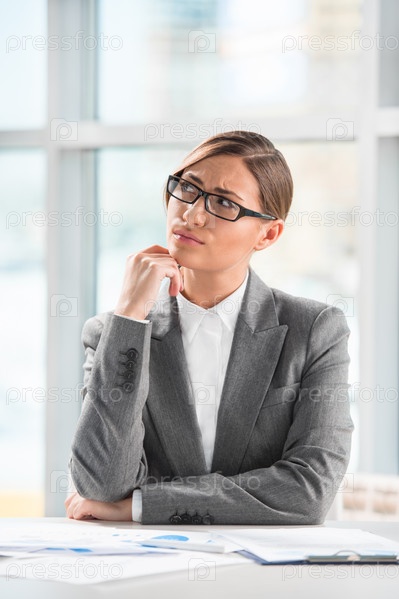 Портрет задумчивой бизнес-леди с документами в офисе