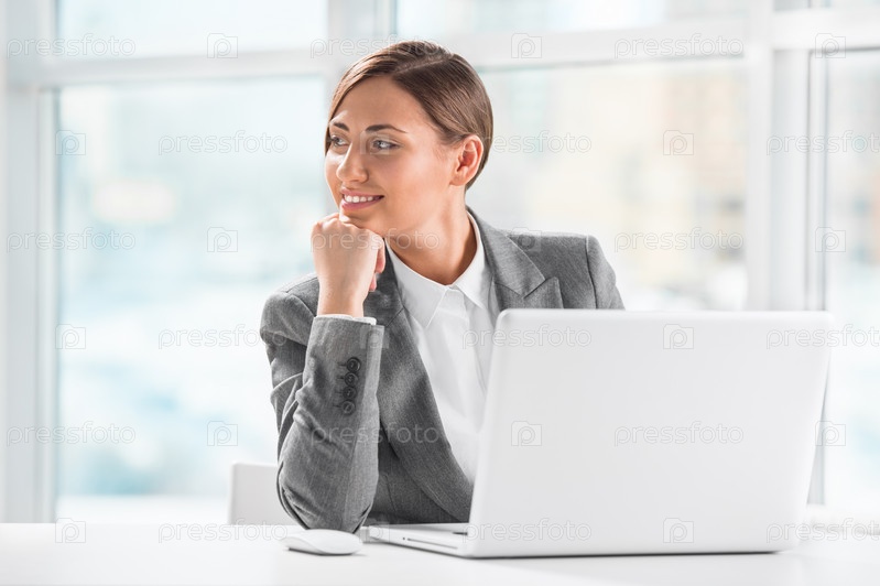 Портрет бзнес-леди перед ноутбуком