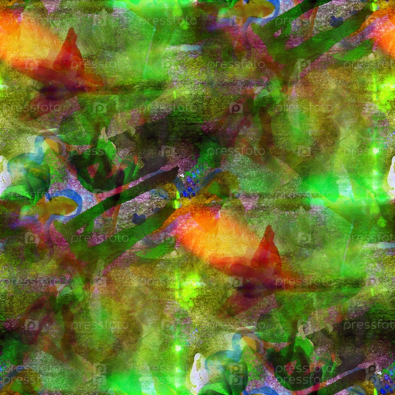 Зеленый, оранжевый абстрактный бесшовный акварельный фон