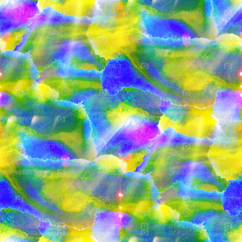 Синий, зеленый, желтый абстрактный акварельный бесшовный фон