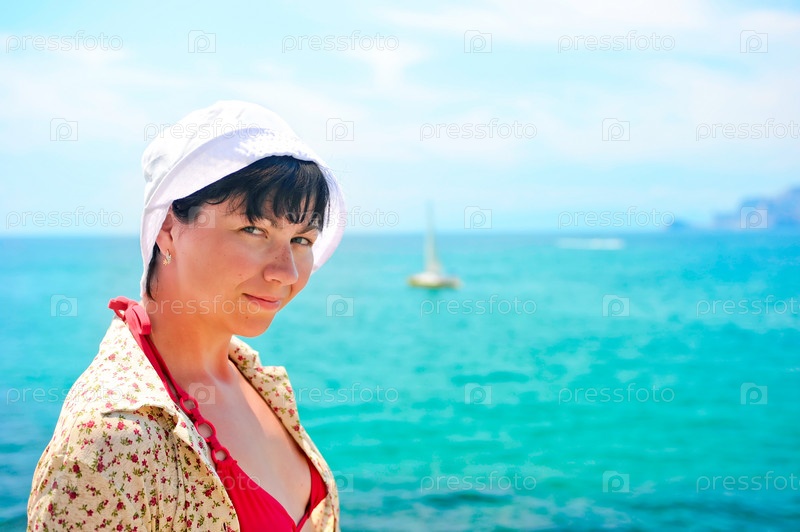 Счастливая девушка на фоне моря