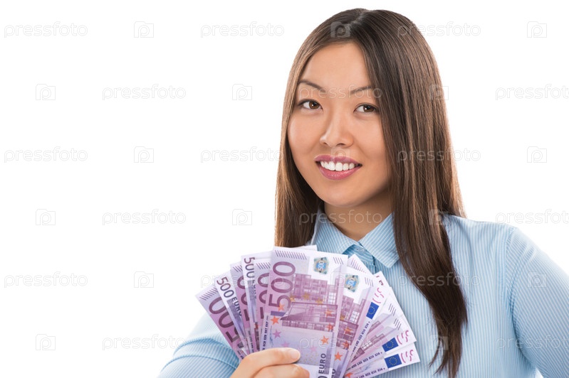 Молодая азиатская бизнес-леди с деньгами