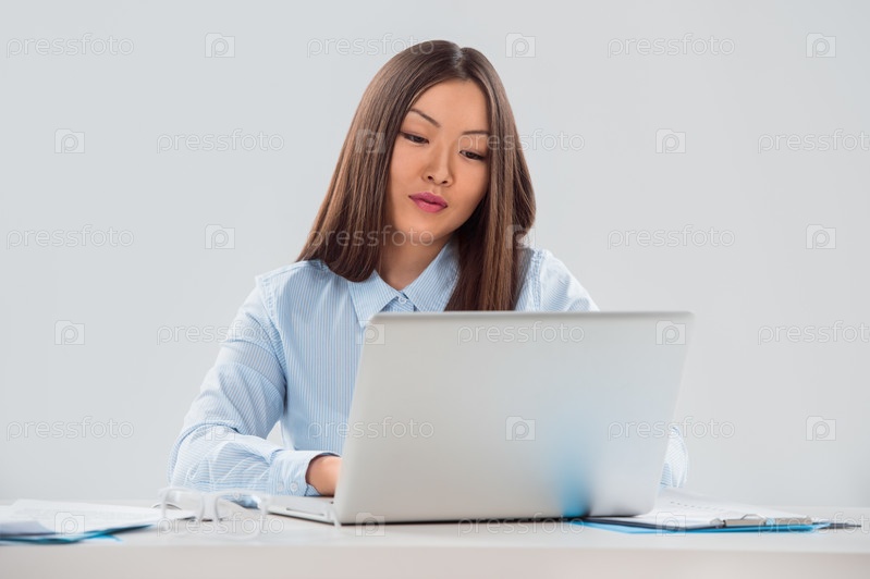 Бизнес-леди работает на ноутбуке