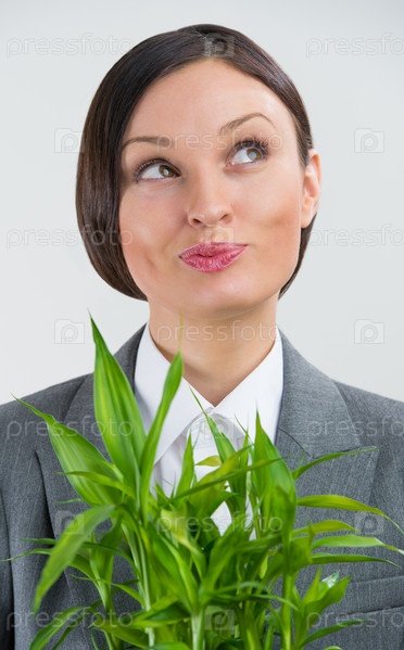Бизнес-леди с бамбуком - символом успеха. Растущий бизнес