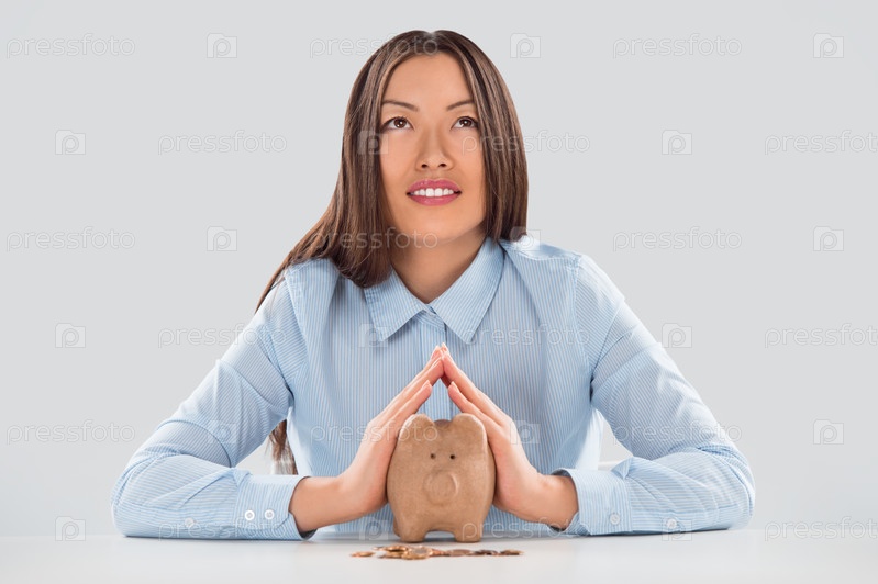 Мечтающая бизнес-леди с копилкой