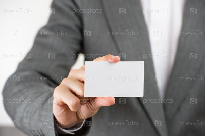 Молодая деловая женщина показывает чистую визитную карточку