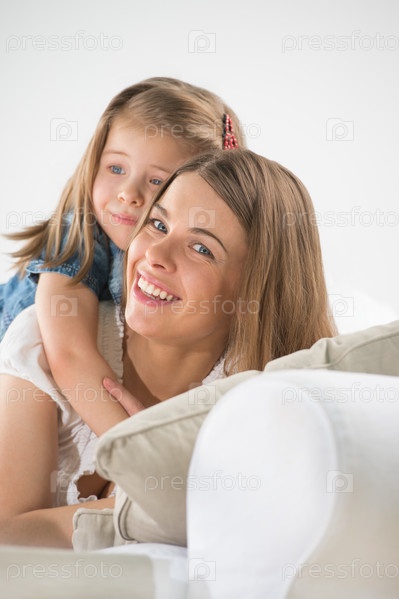 Девочка и мать в игривом настроении дома