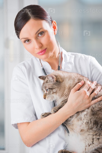 Ветеринар успокаивает кошку в клинике