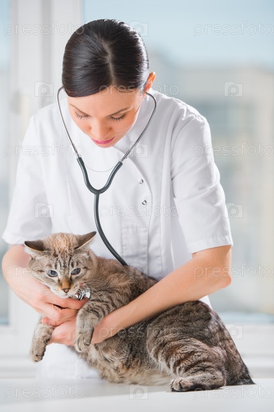 Ветеринар осматривает кошку в клинике
