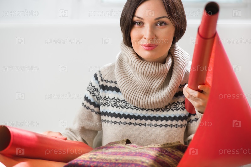 Портрет женщины, готовящей подарок мужу или другу на день рождения, Рождество или День Святого Валентина