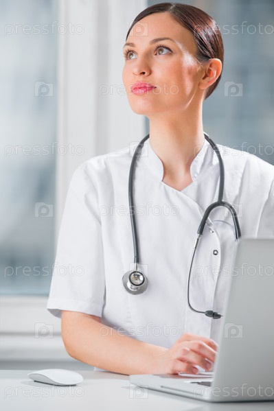 Портрет женщины-врача с ноутбуком в клинике