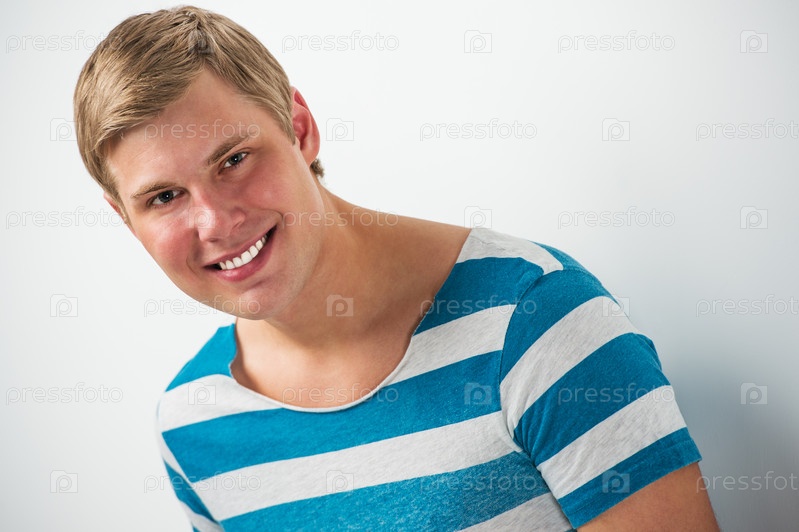 Красивый молодой мужчина на фоне белой стены