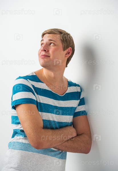 Красивый молодой мужчина на фоне белой стены