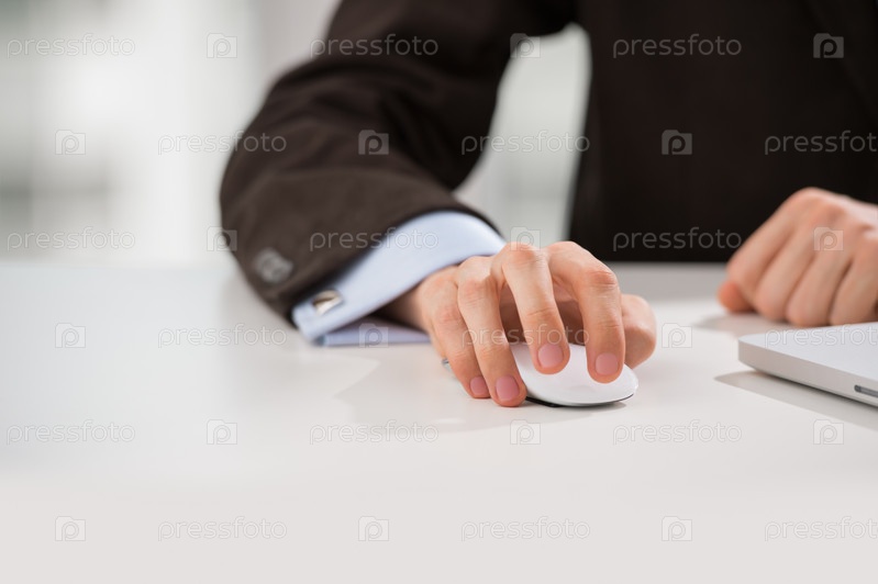 Деловой человек в элегантном костюме с ноутбуком в офисе