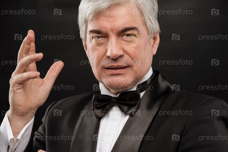 Красивый пожилой бизнесмен на черном фоне