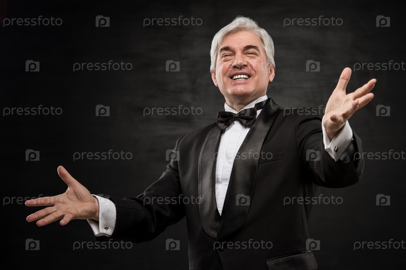 Красивый пожилой бизнесмен на черном фоне