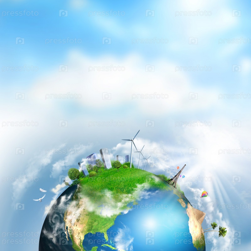 Земля с различными элементами на поверхности. Дневное время
