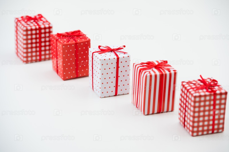 Красные рождественские подарки и украшения на белом фоне