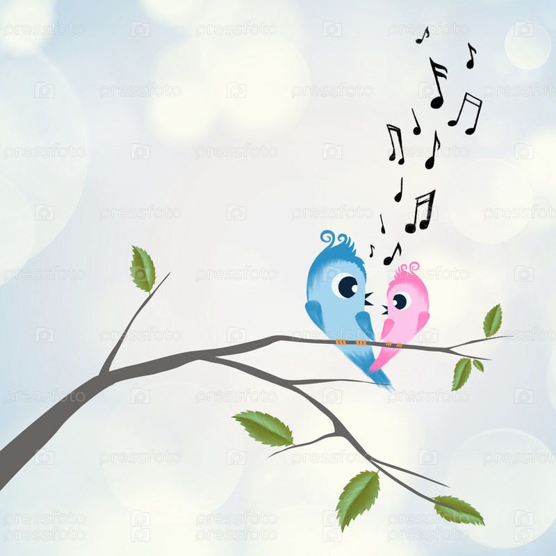 Две птицы флиртуют и поют на ветке