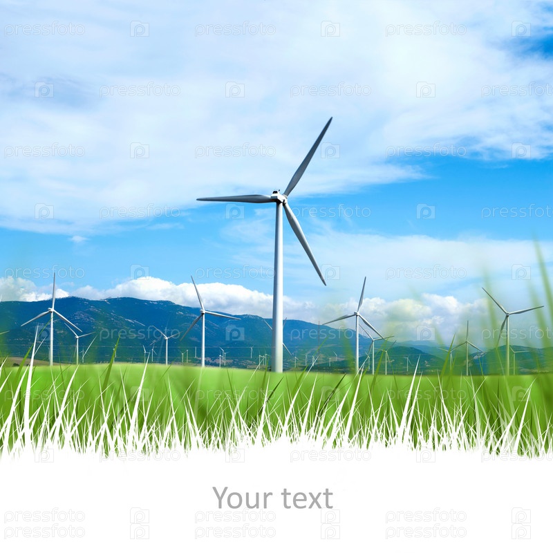 Ветряные турбины на фоне синего неба