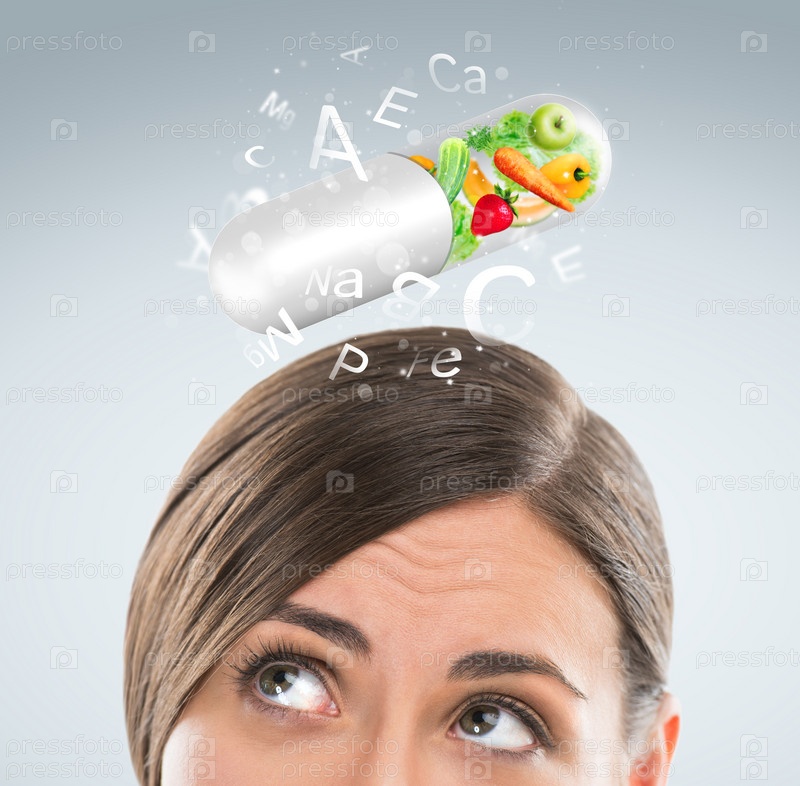 Концепция здорового образа жизни. Женщина с витаминами