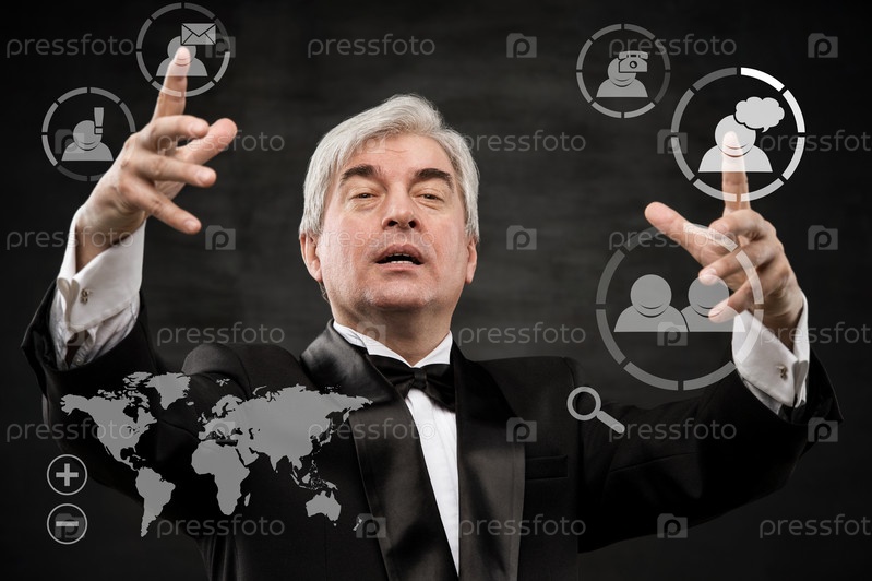 Бизнесмен работает с современными Интернет-технологиями на международном рынке