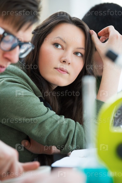 Учащиеся средней школы. Группа студентов, работающих вместе в лаборатории